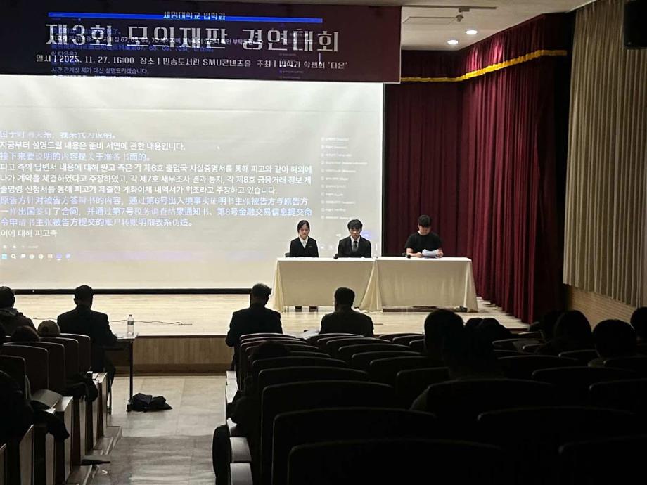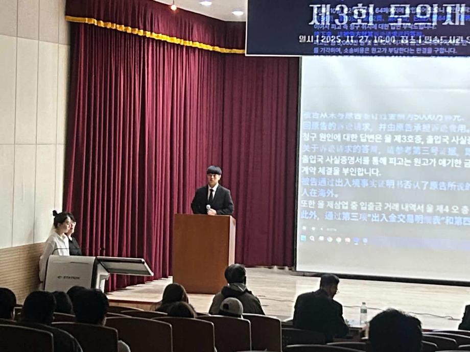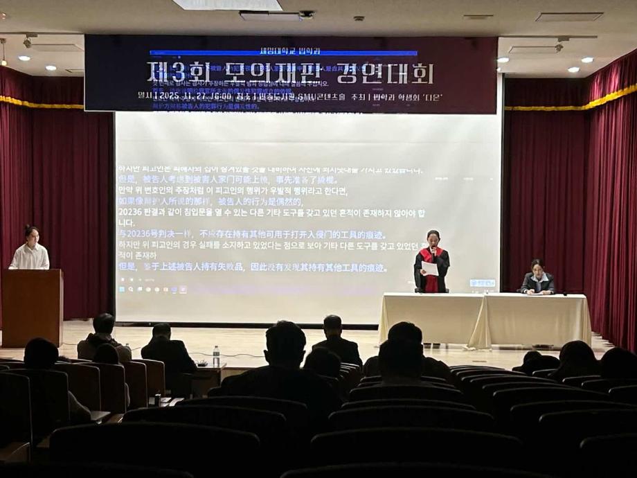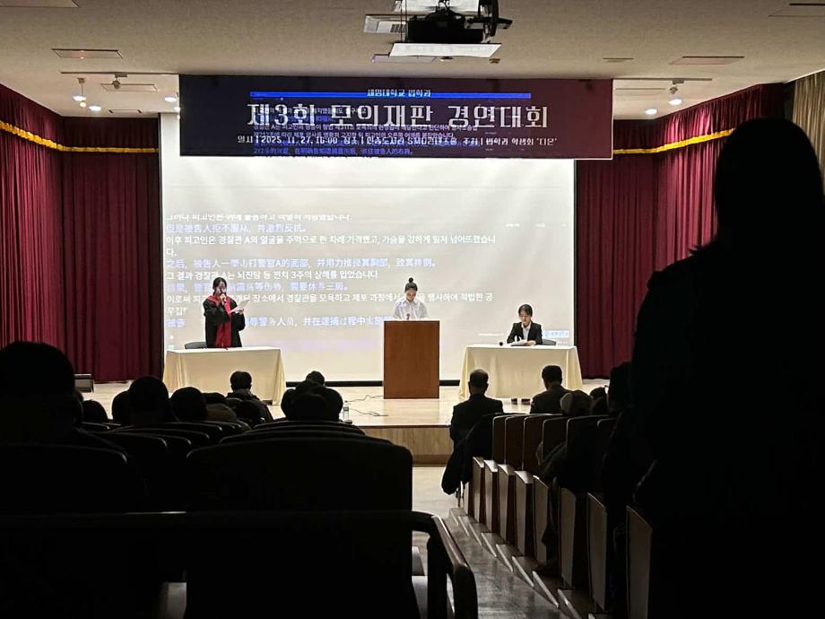 본문 시작 홈으로 커뮤니티 학과안내 교수소개 학과과정 커뮤니티 홈페이지가이드 학과사진첩 공지사항 취업정보 학과사진첩 학과행사 동아리 학생회 교우소식 학과사진첩 페이스북 트위터 프린트 2025학년도 제3회 법학과 모의재판 경연대회 법학과 319 2025-12-03 2025년 11월 27일 민송도서관 1층 콘텐츠홀에서 법학과 모의재판 경연대회 진행하였습니다. 참여하신 모든 분들 고생 많으셨습니다. 목록 이전2025학년도 법학과 특강 담당부서 : 법학과 담당자 : - 연락처 : 043-649-1764 최종수정일 : 2024-10-26 만족도조사 만족도 조사 이 페이지에서 제공하는 정보에 대하여 만족하시나요? 매우만족 만족 보통 불만족 매우불만족