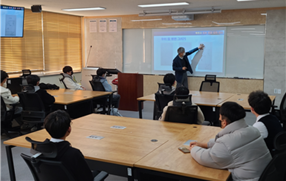 우리학과에서는 지난 11월 4일 고등학교 재학생을 대상으로 학생들의 전공 선택을 위한 사전 전공 체험 및 학과/학교 홍보 안내를 목적으로 위의 프로그램을 진행하였다. 본학과 Archi-608(이공 205)에서 14시부터 16시까지의 행사에 제천고등학교 1, 2학년 재학생 12명이 참석하여 건축의 다양한 진로방향과 전공분류에 따른 교과과정 상의 주요 과목을 살펴보고, 세계 유명 건축물에 대한 랜선 투어 순서로 흥미롭고 즐거운 시간을 보낼 수 있었다.