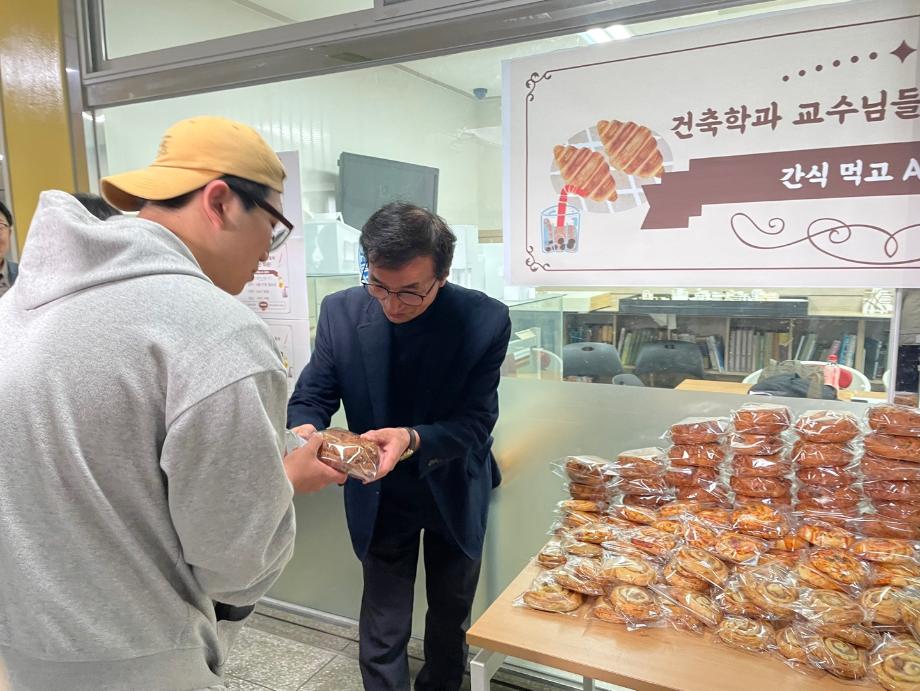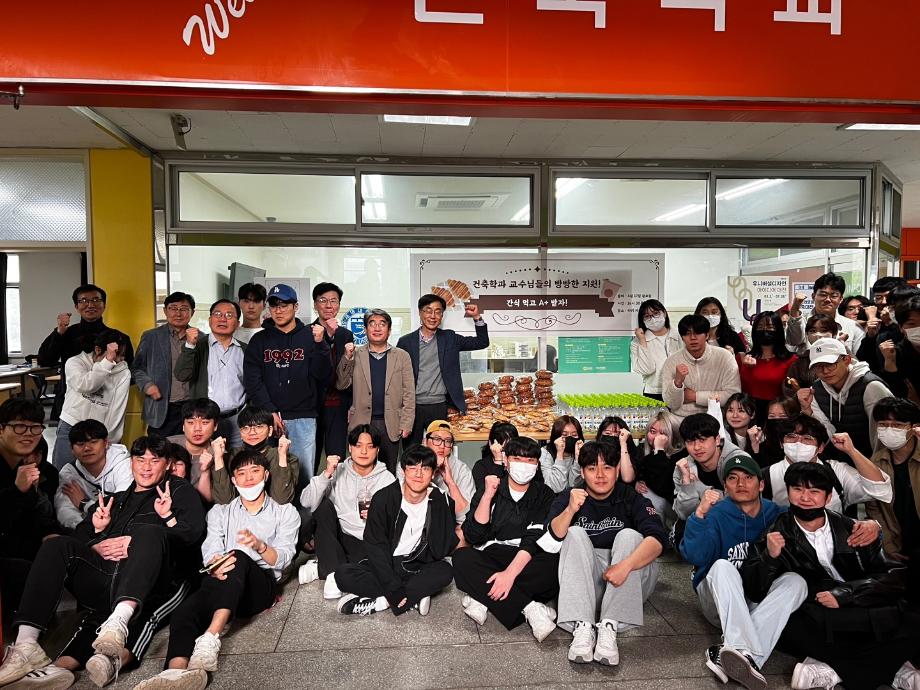 본문 시작 홈으로 커뮤니티 학과소개 교수소개 교육과정 학과 행사 및 활동 커뮤니티 홈페이지가이드 페이스북 트위터 프린트 힘내라~ 건축학과~!! 건축학과 1679 2023-04-19 세명대학교 건축학과(학과장 이태구)는 2023학년도 1학기 중간고사 기간에 학생들을 응원하기 위해 “건축학과 교수들의 빵빵한 지원!” 행사를 진행하였다. 건축학과 교수님들은 학생들에게 빵과 음료수를 전달하면서 중간고사를 잘 준비할 수 있도록 응원의 메시지를 전달하였고, 학과장 이태구 교수는 “세명대학교 건축학과 학생들의 학교생활 만족도 향상을 위해 학과 교수님들은 항상 고민하고 있다.”고 말했다. 목록 이전2023학년도 건축학과 연합 MT 다음 TODAY IS 비타민 DAY !!! “2차 과일 나눔 이벤트” 만족도조사 만족도 조사 이 페이지에서 제공하는 정보에 대하여 만족하시나요? 매우만족 만족 보통 불만족 매우불만족