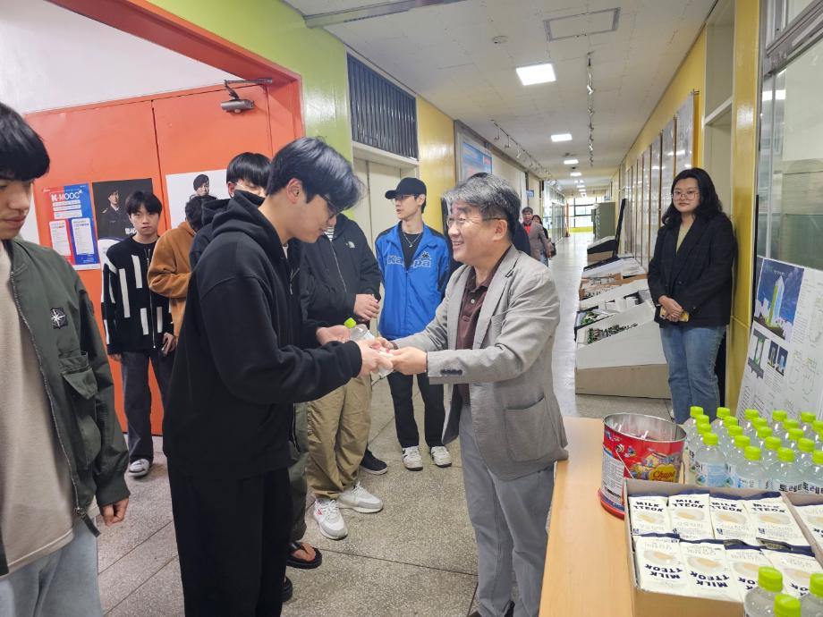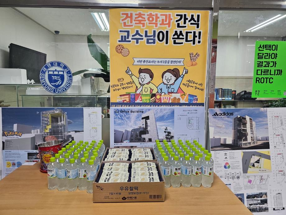 본문 시작 홈으로 커뮤니티 학과소개 교수소개 교육과정 학과 행사 및 활동 커뮤니티 홈페이지가이드 페이스북 트위터 프린트 건축학과 중간 고사 간식 이벤트 건축학과 990 2024-04-22 세명대학교 건축학과(학과장 손창배)는 2024학년도 1학기 중간고사 기간에 학생들을 응원하기 위해 “건축학과 간식 교수님이 쏜다” 행사를 진행하였다. 건축학과 교수님들은 학생들에게 찹쌀떡과 음료수를 전달하면서 중간고사를 잘 준비할 수 있도록 응원의 메시지를 전달였다 목록 이전공모전 수상작 Ⅲ 다음 가라 건축몬 만족도조사 만족도 조사 이 페이지에서 제공하는 정보에 대하여 만족하시나요? 매우만족 만족 보통 불만족 매우불만족