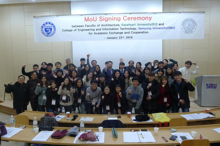 2018.01.22 (월) ~ 2018.01.26 (금) 까지 태국 방콕 카세삿대학교(Kasetsart University) 건축학과 교수님들과 학생 25명을 초청해 '도시재생 국제건축디자인 워크숍(IADW) 2018'을 성공적으로 마무리 하였습니다.