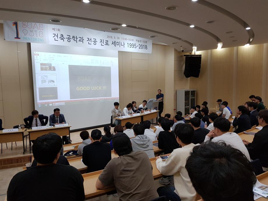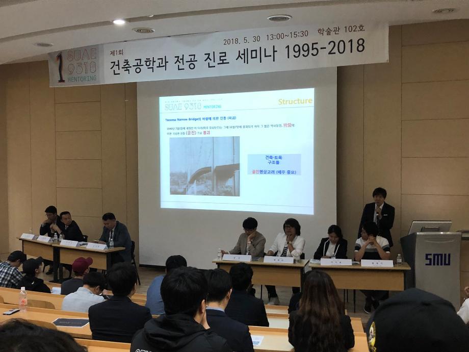 2018년 5월 30일(수) 학술관 102호에서 ‘제1회 건축공학과 전공 진로 세미나’를 개최하였습니다.