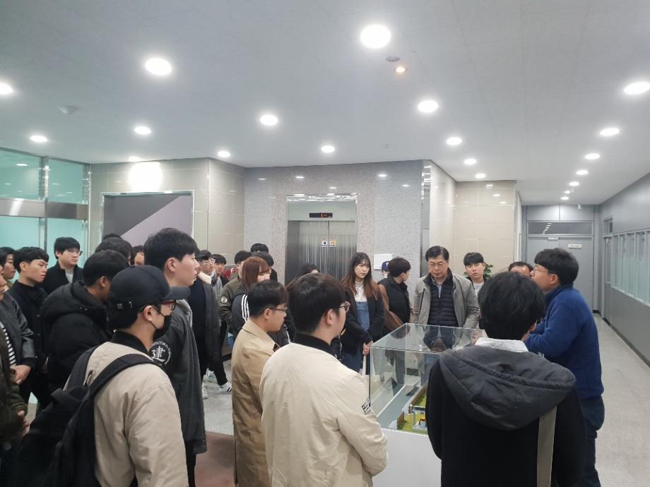 10월 26일(금요일) 건축공학과에서는 본교의 현장중심 교육방침에 입각하여 2학년 학생들의 현장견학을 실시하였다. 총 43명(학생 41, 교수 2)이 참가한 이번 견학은 전공과목인 ‘도시환경디자인(담당 권태호 교수)’과 ‘건축환경계획응용(담당 이응직 교수)’의 융합적 차원에서 이루어졌고, 충북혁신도시의 도시계획 환경디자인 견학 및 체험 그리고 한국건축생활환경 시험연구원(KCL)에서 건축과 생활 속에서의 친환경 자재부분에 대한 견학으로 새로운 경험과 안목을 높이는 계기가 되었다. 또한 강의실에서 습득한 이론적인 지식을 현장견학과 체험을 통해 극대화시키고 전공분야의 다양한 영역 탐색으로 전공에 대한 기대감과 자신감을 높이는 효과를 얻었다.
