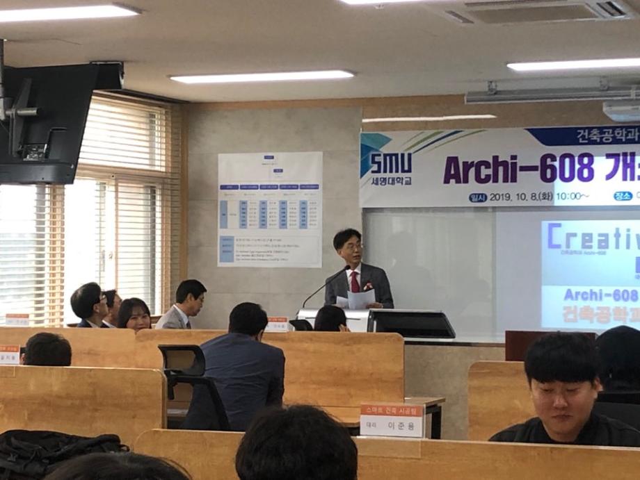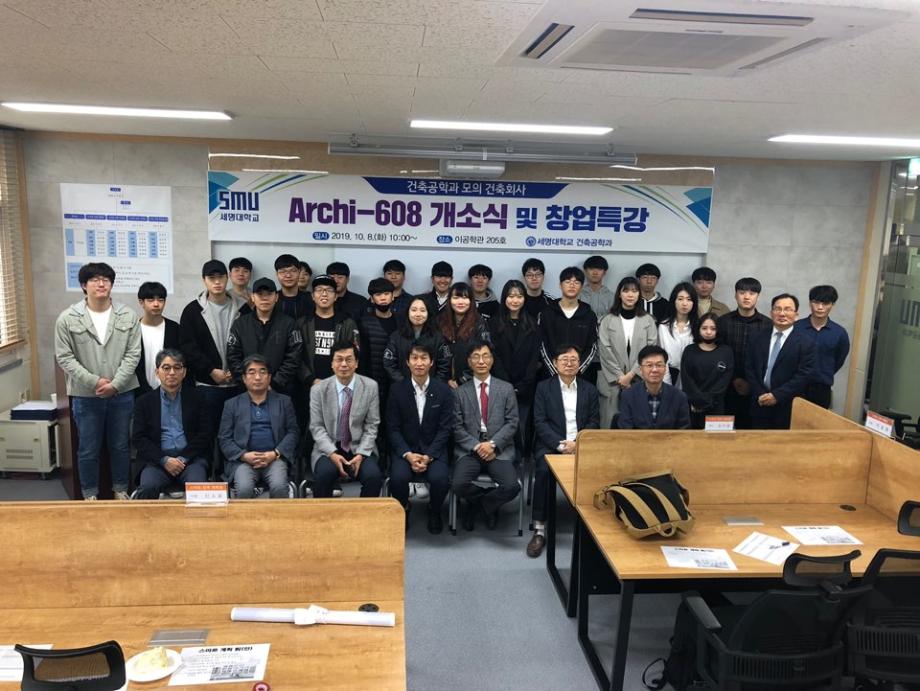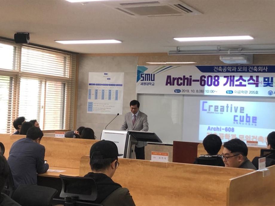 2019년 10월 8일(화) 10:00시 이공학관 Creative Cube 실에서 Archi-608(건축공학과 모의 건축회사) 개소식 진행