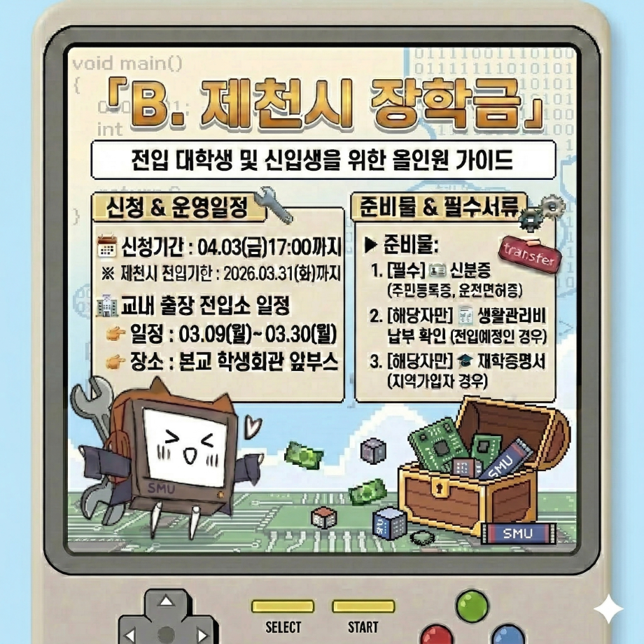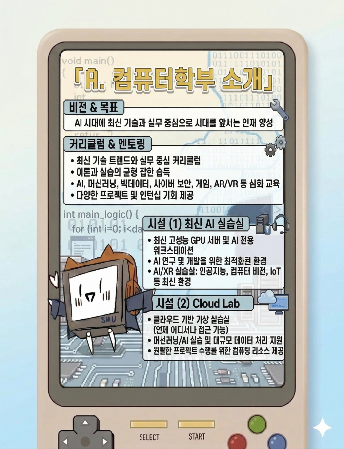 본문 시작 홈으로 학부활동 학부소개 학부활동 교육과정 커뮤니티 학부생활 입학안내 홈페이지가이드 학부갤러리 학부행사 학생회 활동 전공 동아리 학부갤러리 학부갤러리 페이스북 트위터 프린트 2026년 컴퓨터학부 소개 컴퓨터학부 65 2026-03-24 2026학년도 컴퓨터학부를 소개부터 학교 생활에 필요에 대한 가이드까지 안내해드립니다 목록 이전2026학년 신입생 환영회 담당부서 : 컴퓨터학부 담당자 : - 연락처 : 043-649-1272 최종수정일 : 2024-10-26 만족도조사 만족도 조사 이 페이지에서 제공하는 정보에 대하여 만족하시나요? 매우만족 만족 보통 불만족 매우불만족