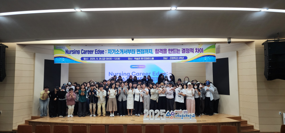 본문 시작 홈으로 커뮤니티 학과소개 교수소개 교육과정 학과소식 학과특성화 사업 커뮤니티 홈페이지가이드 포토갤러리 학사일정 포토갤러리 학생회 학과동아리 학과 취업정보 동창회 학과운영개선의견 발전기금 포토갤러리 페이스북 트위터 프린트 S-BOOT 취업 특강 💼 간호학과 288 2025-09-30 김순애 간호국장님께서 병원 취업 성공 사례를, 조연희 수간호사님께서는 자기소개서 작성과 면접 준비에 대한 현실적인 조언을 전해주셨습니다. 특강을 통해 꿀팁 얻고, 모두 취업까지 성공하세요! 목록 이전간호학과 청룡체전 준우승🎉 담당부서 : 간호학과 담당자 : 서예지 연락처 : 043-649-1357 최종수정일 : 2024-10-26 만족도조사 만족도 조사 이 페이지에서 제공하는 정보에 대하여 만족하시나요? 매우만족 만족 보통 불만족 매우불만족