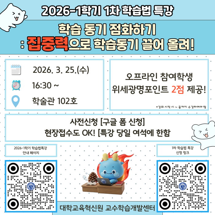본문 시작 홈으로 커뮤니티 학과소개 학과과정 대학원 커뮤니티 연구동아리 홈페이지가이드 학과공지 학과공지 채용정보 학과일정 포토갤러리 유튜브 인스타그램 취업현황 학생회 조직도 졸업생 숏터뷰 학과공지 페이스북 트위터 프린트 1차 학습법 특강 시행 안내 바이오코스메틱학과 조회 : 10 등록일 : 2026-03-16 목록 이전2026학년도 봄학기 평생 교육원 안내문 다음 2026학년도 학생 대상 학습역량진단 홍보물 담당부서 : 바이오코스메틱학과 담당자 : - 연락처 : 043-649-1638 최종수정일 : 2024-10-26 만족도조사 만족도 조사 이 페이지에서 제공하는 정보에 대하여 만족하시나요? 매우만족 만족 보통 불만족 매우불만족