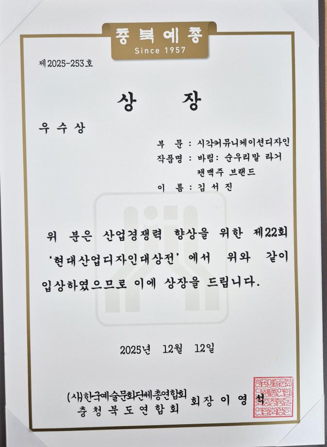 본문 시작 홈으로 학과자랑 학과소개 학과과정 시영소식 입학/취업 AI 학과자랑 SNS소통 홈페이지가이드 학과자랑 학과자랑 학과갤러리 동아리 졸업전시회 학과자랑 페이스북 트위터 프린트 제22회 현대산업디자인대상전 - 우수상, 특선 등 수상! 시각영상디자인학과 124 2025-12-26 우수상 1작, 특선 3작, 입선 다수 등 수상하였습니다 목록 이전2025 국제 사이버디자인 트렌드공모전 -본상 수상! 담당부서 : 시각영상디자인학과 담당자 : - 연락처 : 043-649-1726 최종수정일 : 2024-10-26 만족도조사 만족도 조사 이 페이지에서 제공하는 정보에 대하여 만족하시나요? 매우만족 만족 보통 불만족 매우불만족