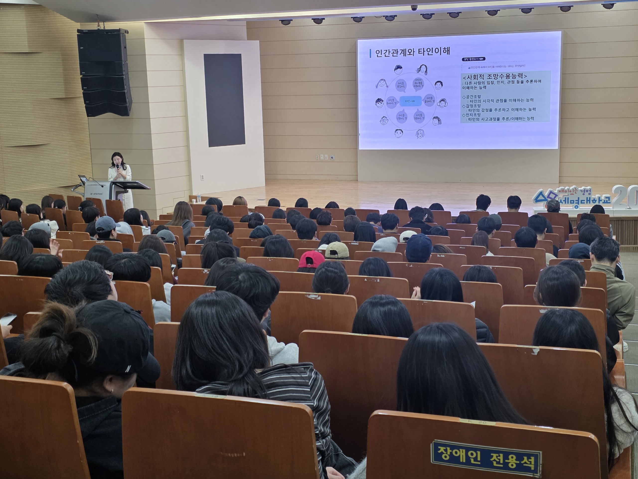이번 특강은 간호학과 서예지 교수가 강연자로 참여하여 “Attitude is Everything: 나를 증명하는 가장 강력한 언어, 인성”이라는 주제로 진행되었으며, 보건바이오대학 소속 재학생 약 300여 명이 참석하였다.