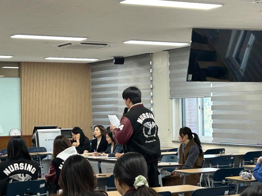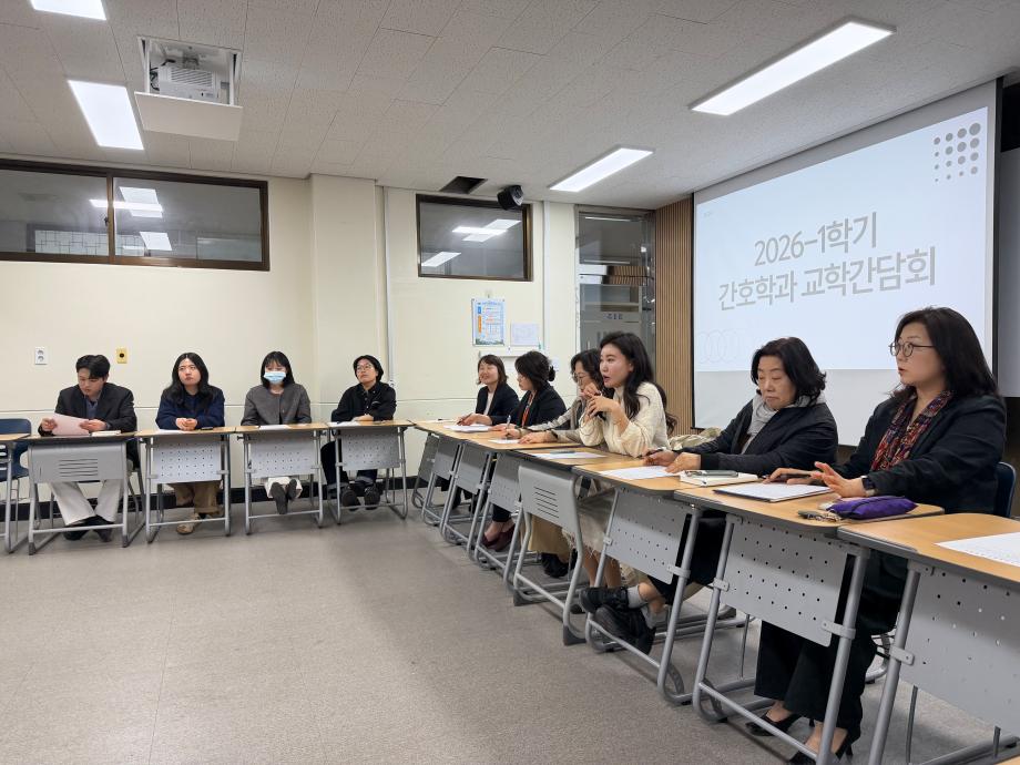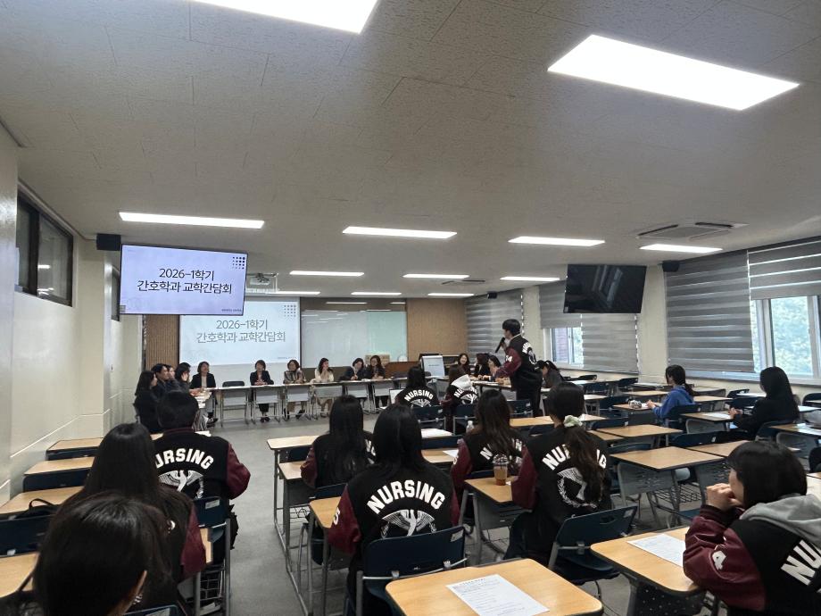 본문 시작 홈으로 커뮤니티 학과소개 교수소개 교육과정 학과소식 학과특성화 사업 커뮤니티 홈페이지가이드 포토갤러리 학사일정 포토갤러리 학생회 학과동아리 학과 취업정보 동창회 학과운영개선의견 발전기금 포토갤러리 페이스북 트위터 프린트 간호학과, 2026학년도 1학기 교학간담회 개최 간호학과 216 2026-04-09 간호학과는 4월 7일(화) 재학생, 교수진 및 행정실이 함께 참여하는 교학간담회를 개최하였다. 이번 간담회는 학습 환경 및 수업 운영, 학과 생활 전반에 대한 다양한 의견을 공유하고 소통하기 위해 마련되었다. 참석자들은 서로의 의견을 경청하며 학과 발전과 교육의 질 향상을 위한 방향에 대해 논의하는 시간을 가졌다. 간호학과는 앞으로도 구성원 간의 지속적인 소통을 통해 보다 나은 교육 환경을 조성해 나갈 예정이다. 목록 이전🧠세명대학교 간호학과, 3학년 대상 ‘치매파트너 교육’ 실시 담당부서 : 간호학과 담당자 : - 연락처 : 043-649-1357 최종수정일 : 2024-10-26 만족도조사 만족도 조사 이 페이지에서 제공하는 정보에 대하여 만족하시나요? 매우만족 만족 보통 불만족 매우불만족